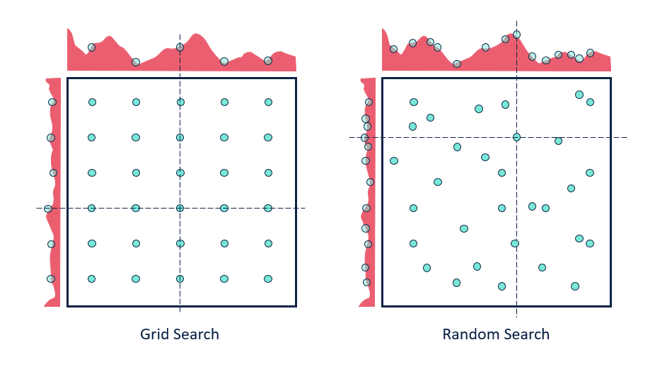 Random search: Choose random values for all hyperparameters, iterate \(n\) times